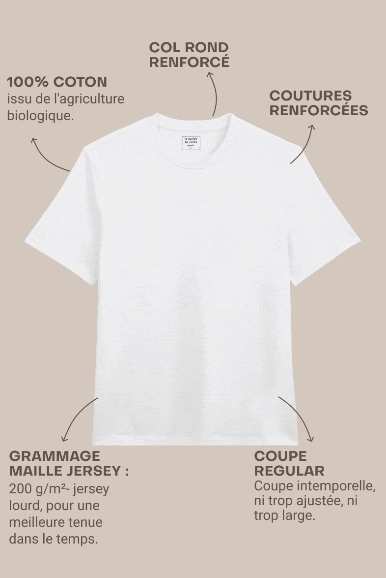- Le t-shirt Regular, c’est une coupe intemporelle, ni trop ajustée, ni trop large.